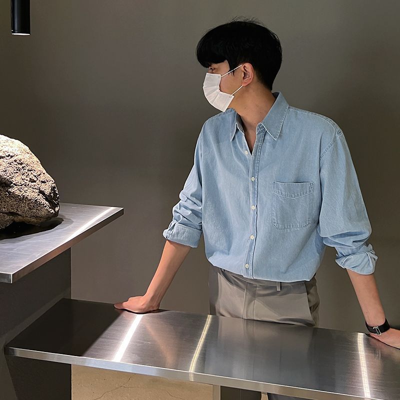 Denim Shirts Men's Autumn Loose Long Sleeve Shirt Coat