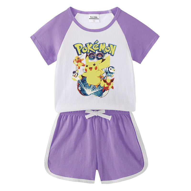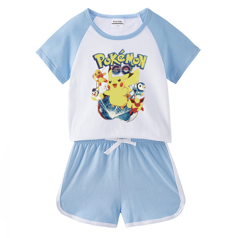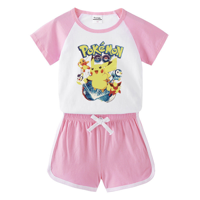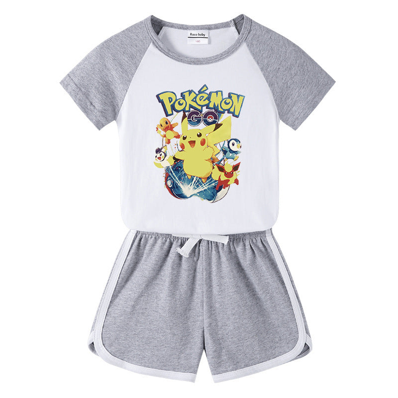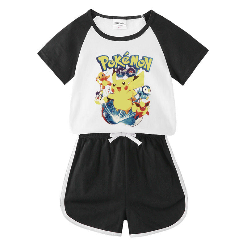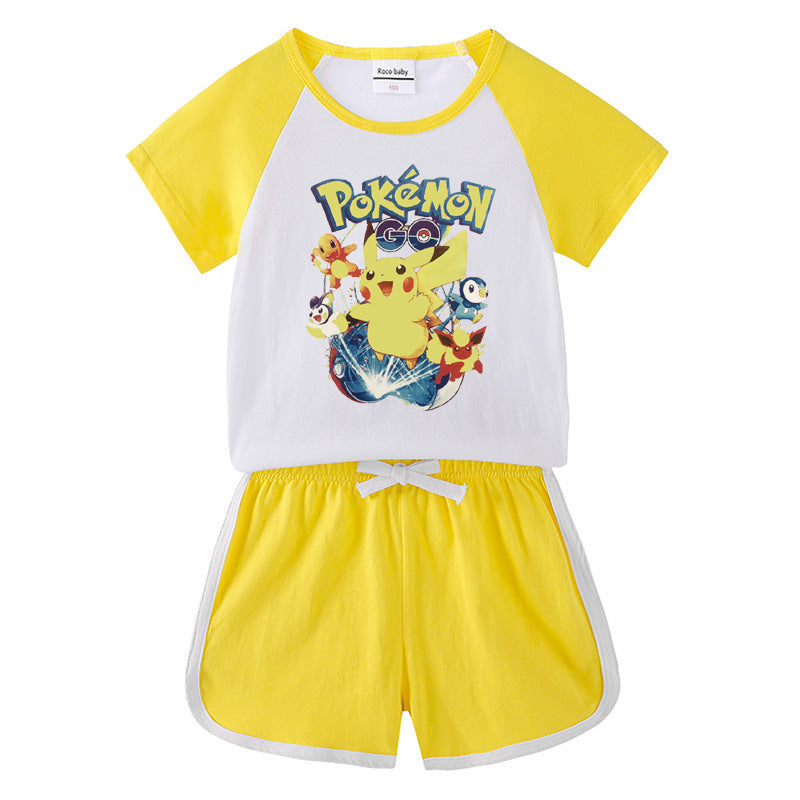 Children Pokemon Pikachu Tshirts & Shorts Short-Sleeved T-shirt Shorts Casual Sports Two-Piece Neutral