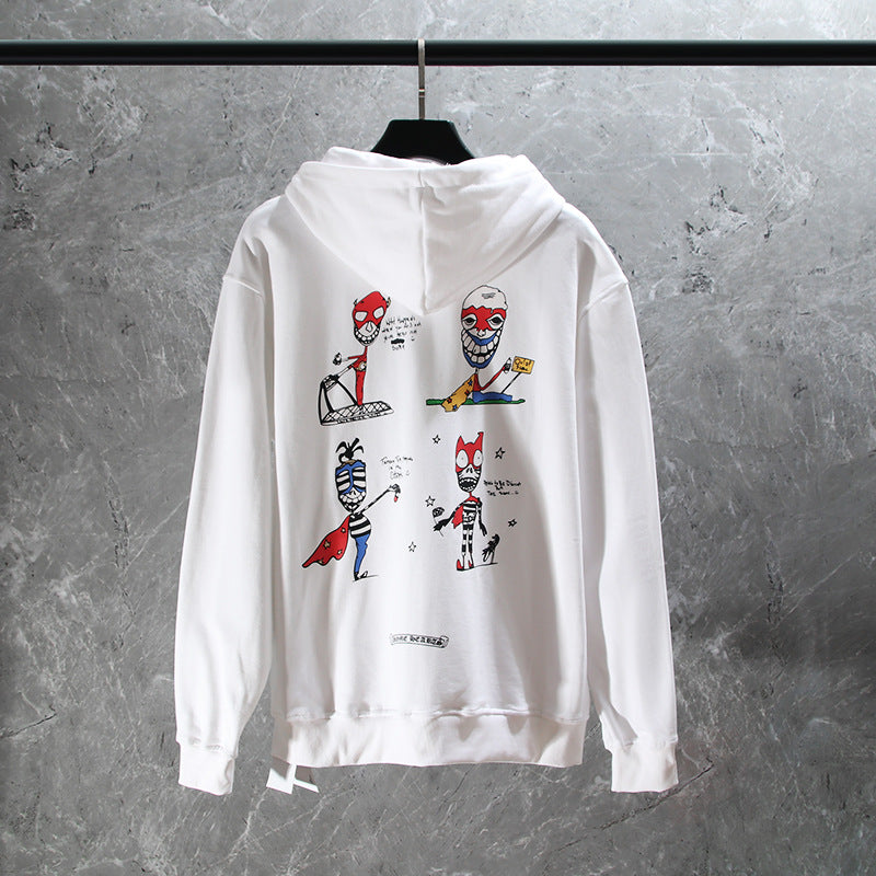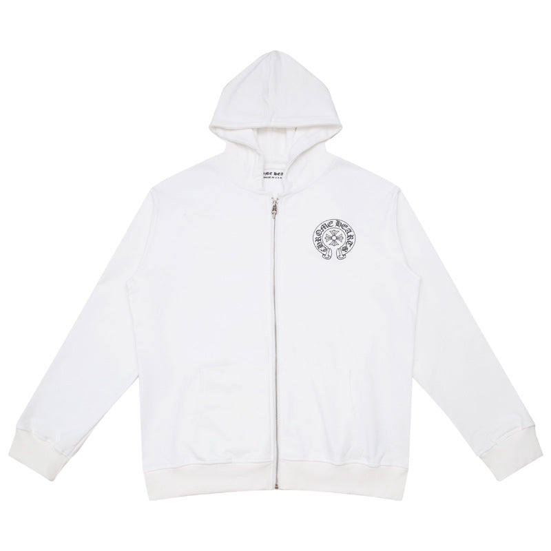 CHH Chrome Heart Hoodie Crowe Cartoon Graffiti Skull Terry Zip Hooded Sweater Loose