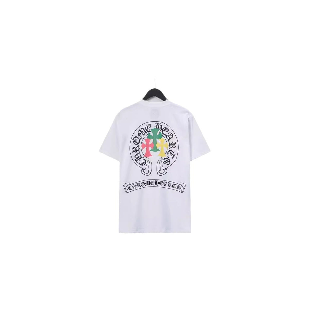 CHH Chrome Heart T Shirts Crowe Scroll Heart Color Cross Print Crew Neck Short Sleeve