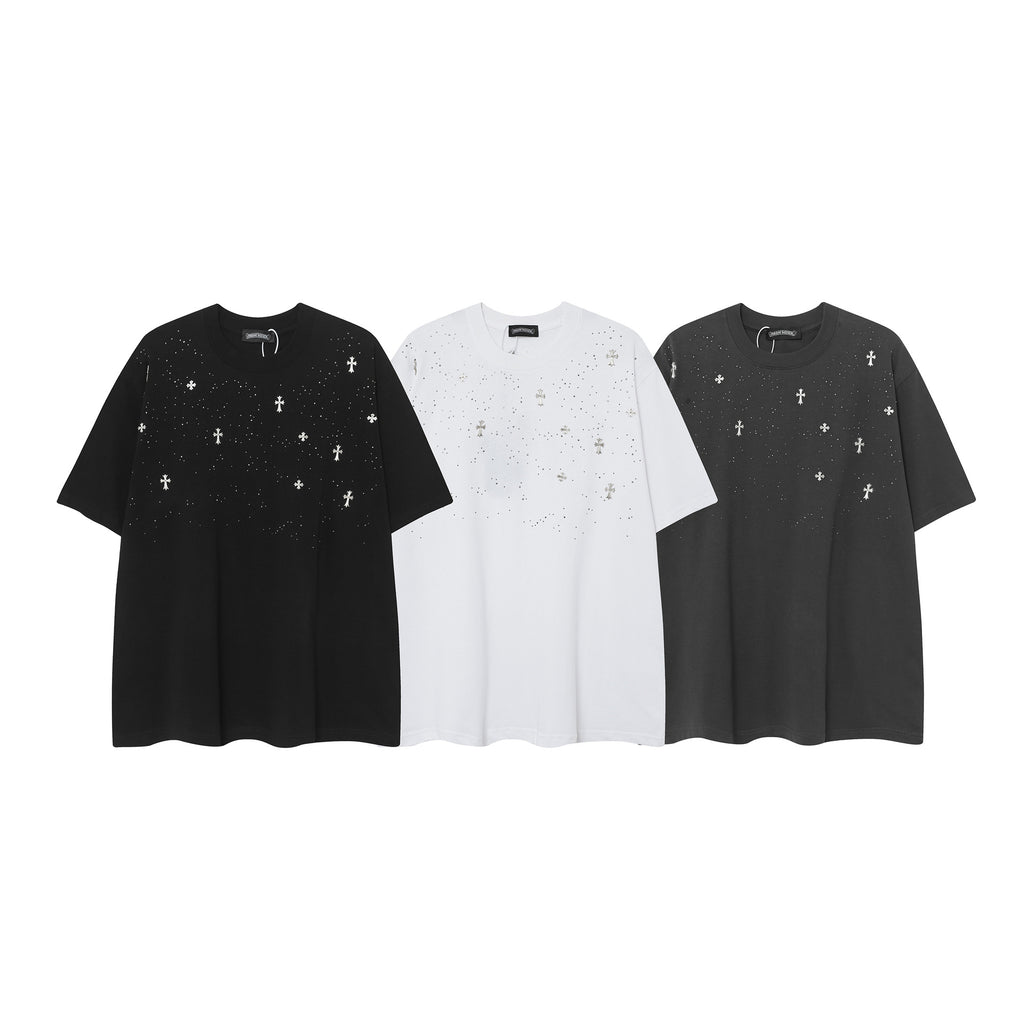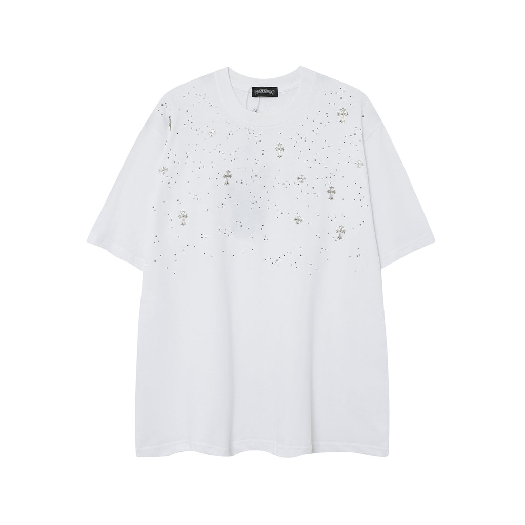 CHH Chrome Heart T Shirts CH Gypsy Hot Diamond Cross Crew Neck Short Sleeve T-Shirt