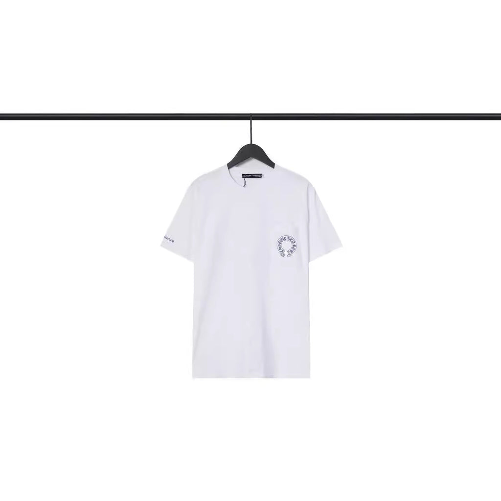 CHH Chrome Heart T Shirts Blue Cross Loose Crew Neck Short Sleeve