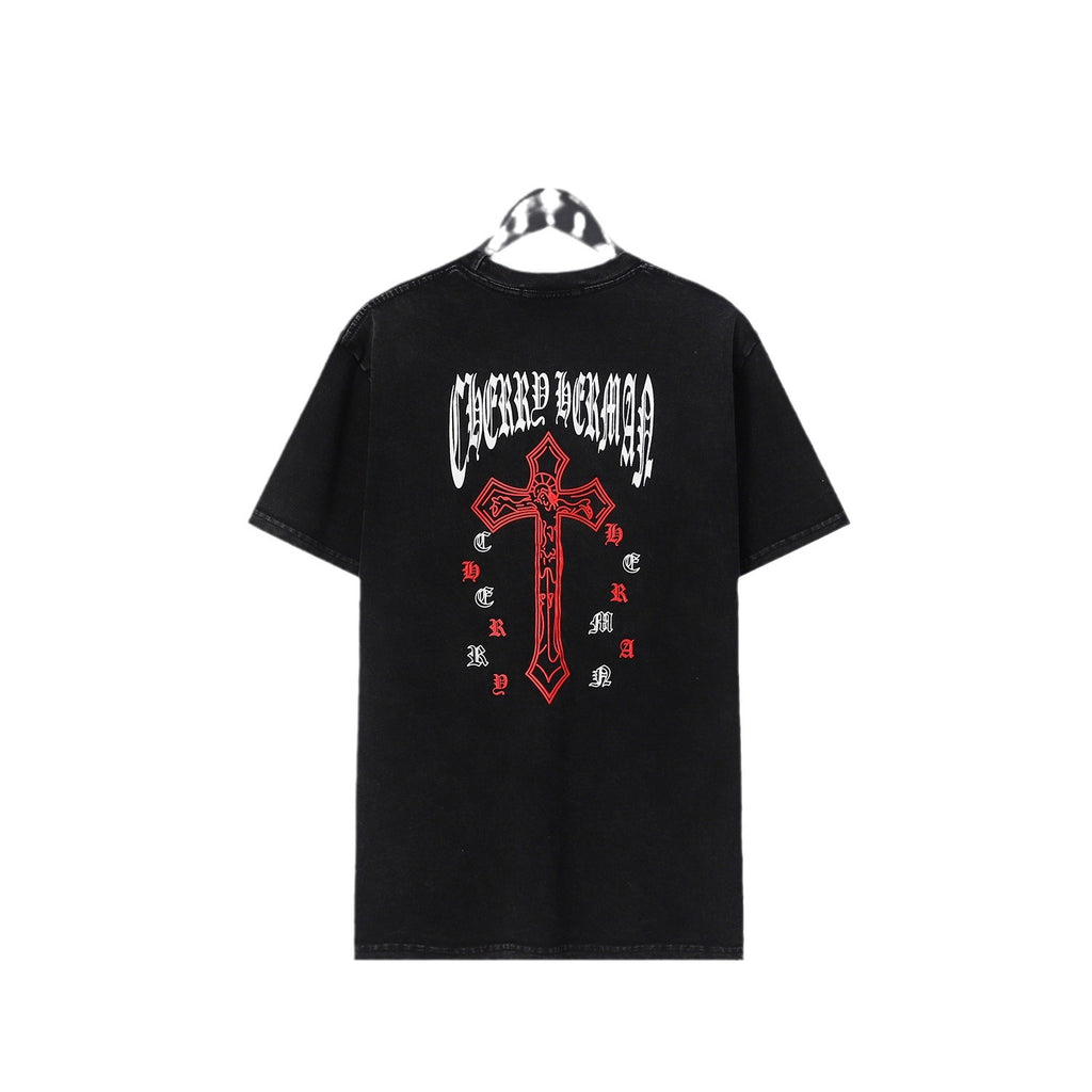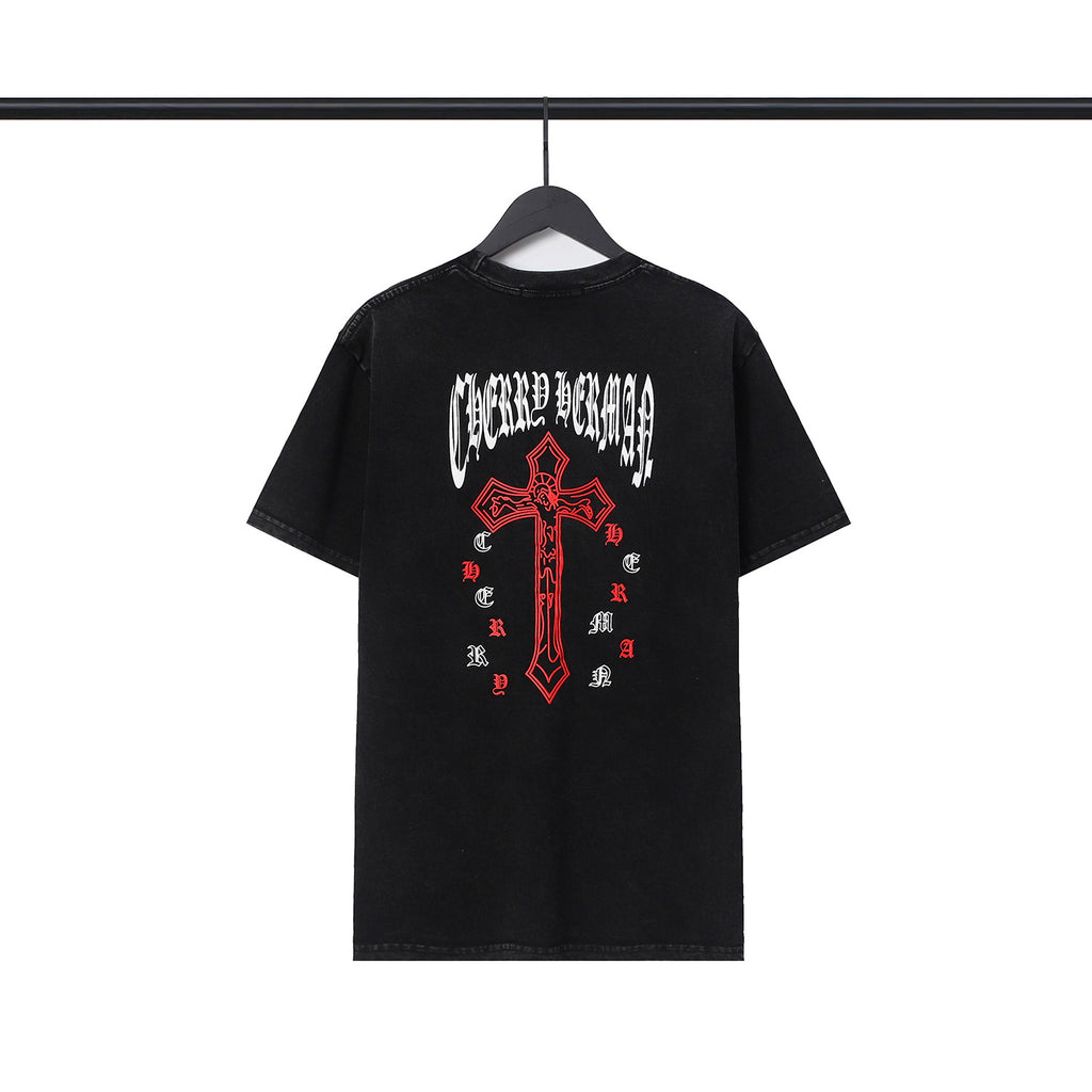 CHH Chrome Heart T Shirts Cross Sanskrit Printed Crew Neck Washed Short Sleeve Fashion T-Shirt