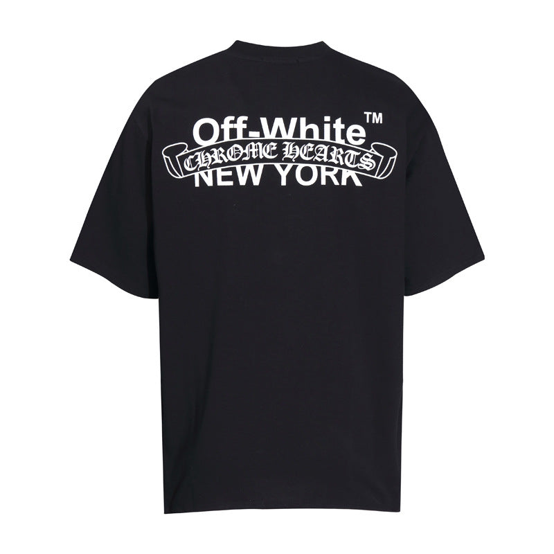 CHH Chrome Heart T Shirts Cross Color Leather Printed Short Sleeve T-Shirt Loose
