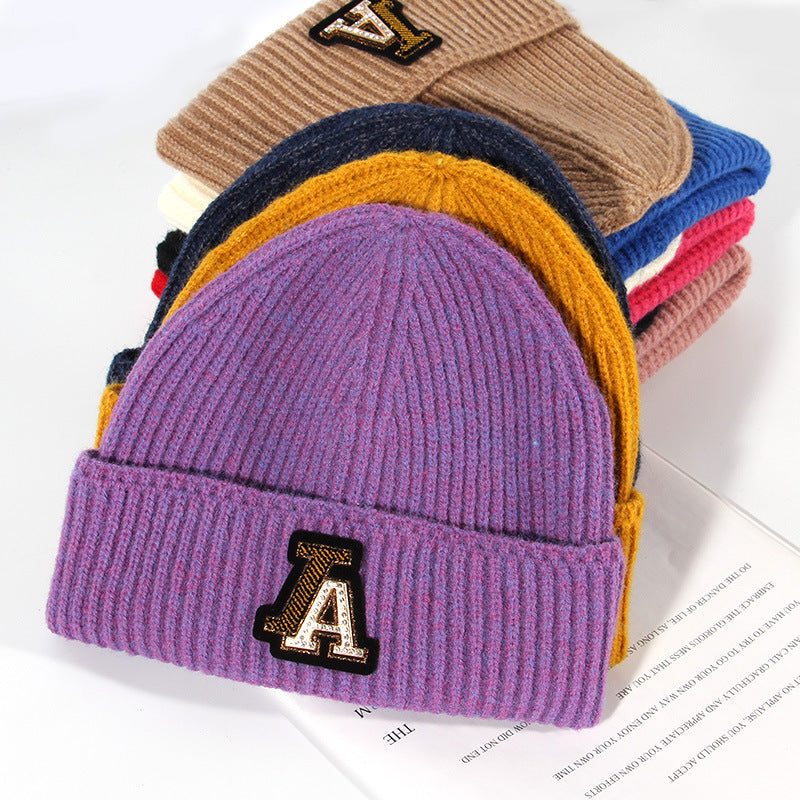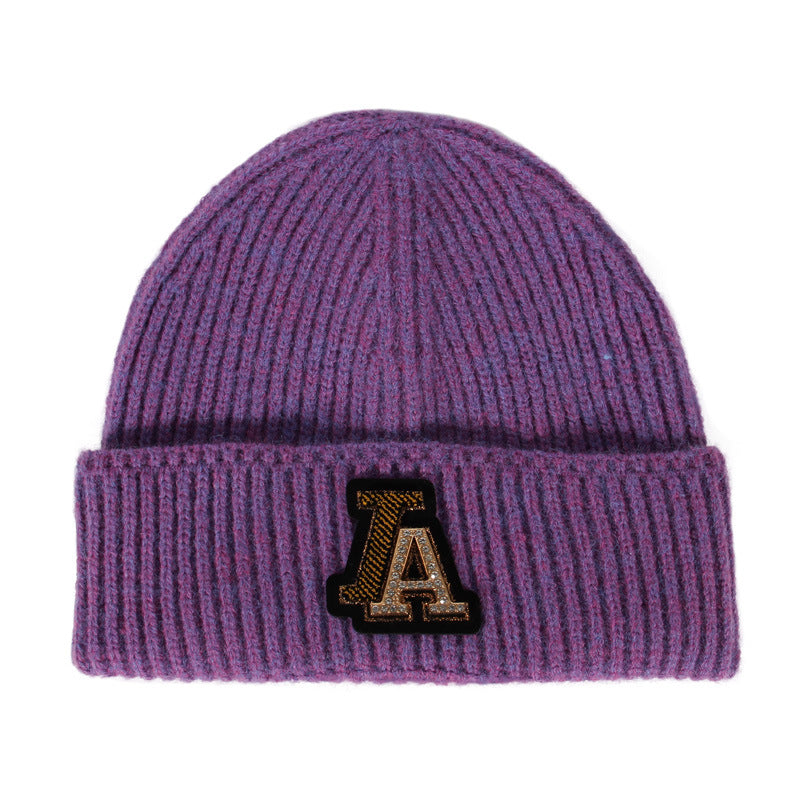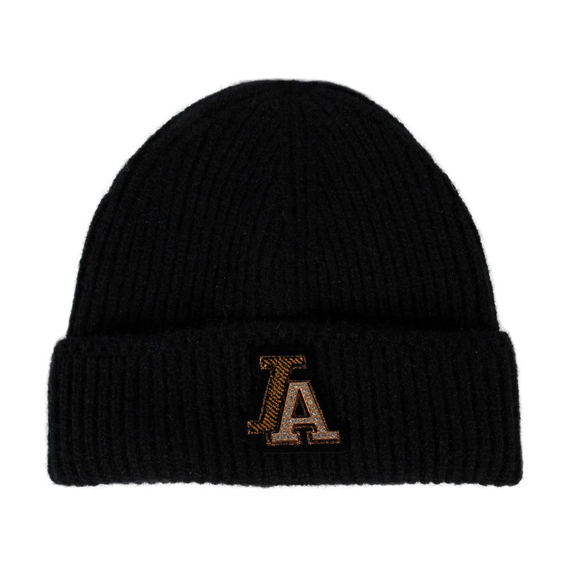 Dogers Baseball Cap Full Diamond Knitted Hat Women's Autumn and Winter Wool Hat