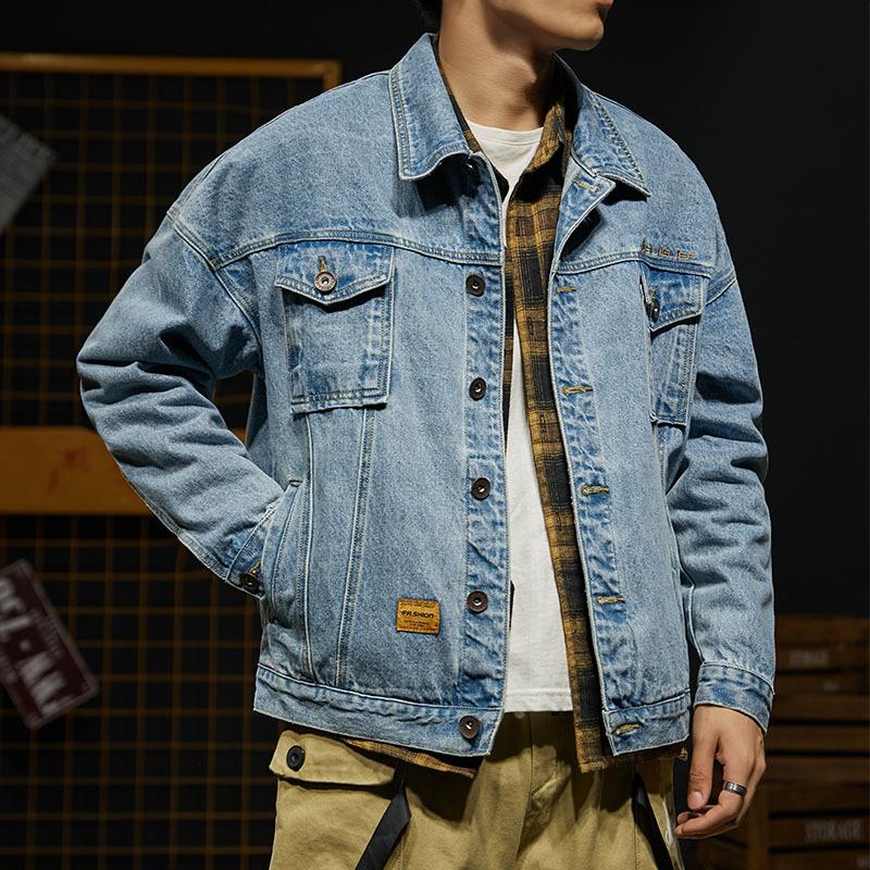 Denim Coat Men's Clothing Spring and Autumn Tops Loose-Fitting Denim Clothes plus Size Loose Men Denim Jacket